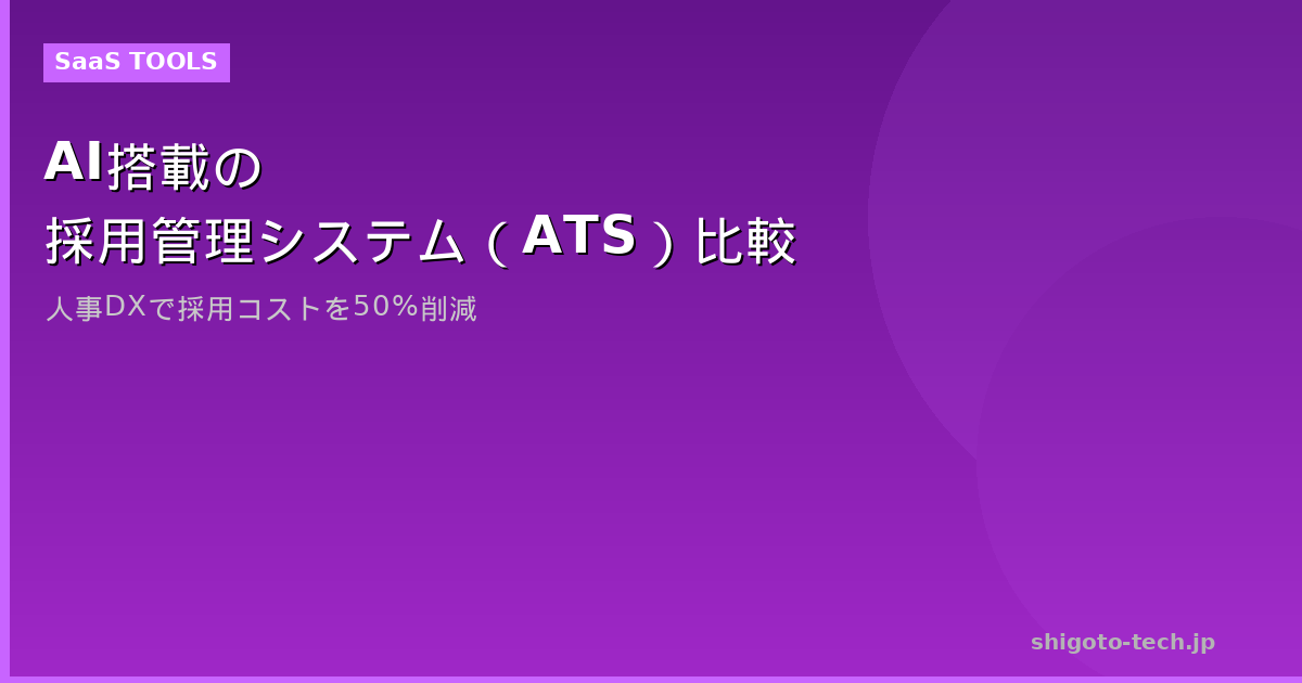 本記事は、複数企業の採用DX導入を支援してきた編集長が、AI搭載のATS(採用管理システム)の5大プレイヤーを、「AI機能」「料金」「導入効果」で比較します。適切なATSの導入で、採用コスト50%削減と採用品質向上を同時に実現できることを、実例をもとに解説します。
