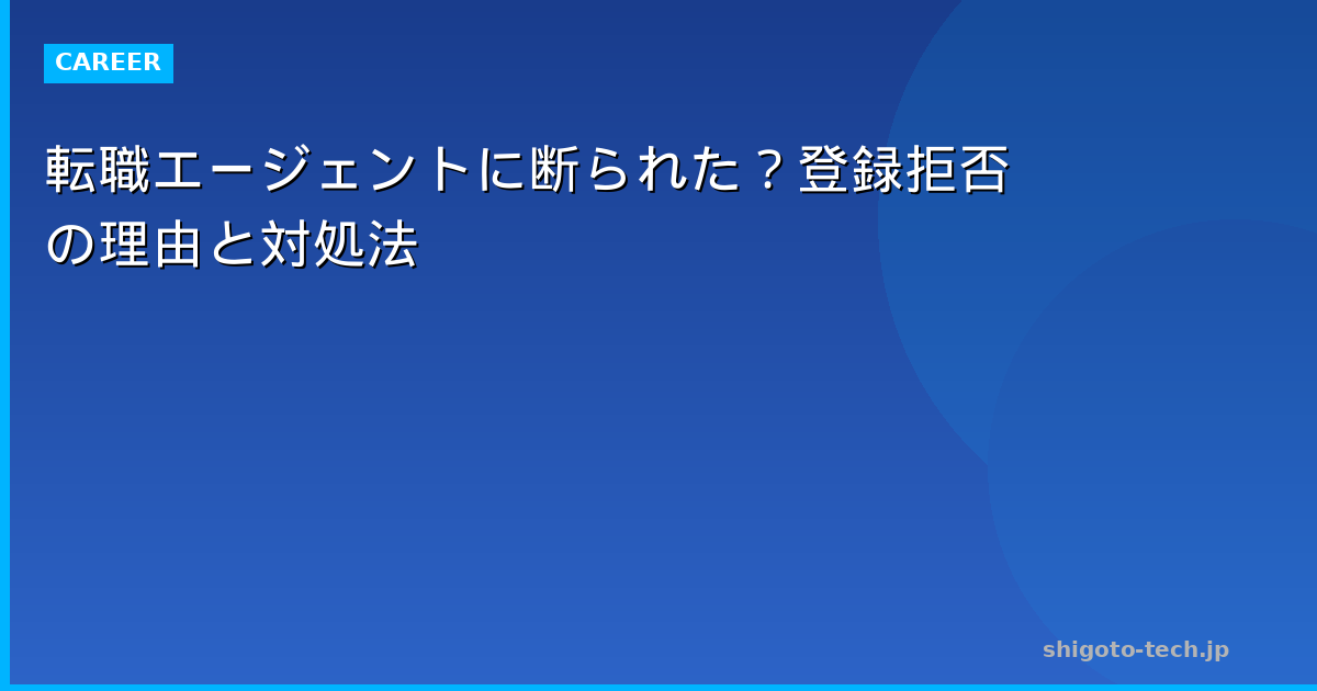- 転職エージェントに断られた?登録拒否の理由と対処法【2026年版】