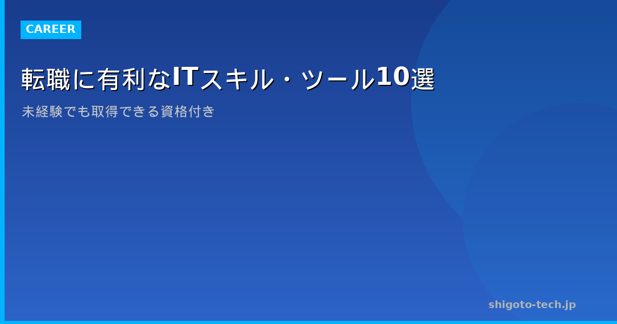 - 転職に有利なITスキル・ツール10選|未経験でも取得できる資格付き【2026年版】