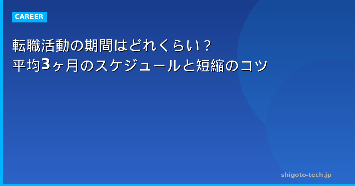 平均3ヶ月という期間を理解することは、転職者が現職での退職予告期間(通常1-3ヶ月)とのタイミング調整、経済的な準備、心理的な準備を計画する上で、非常に重要な指標となります。