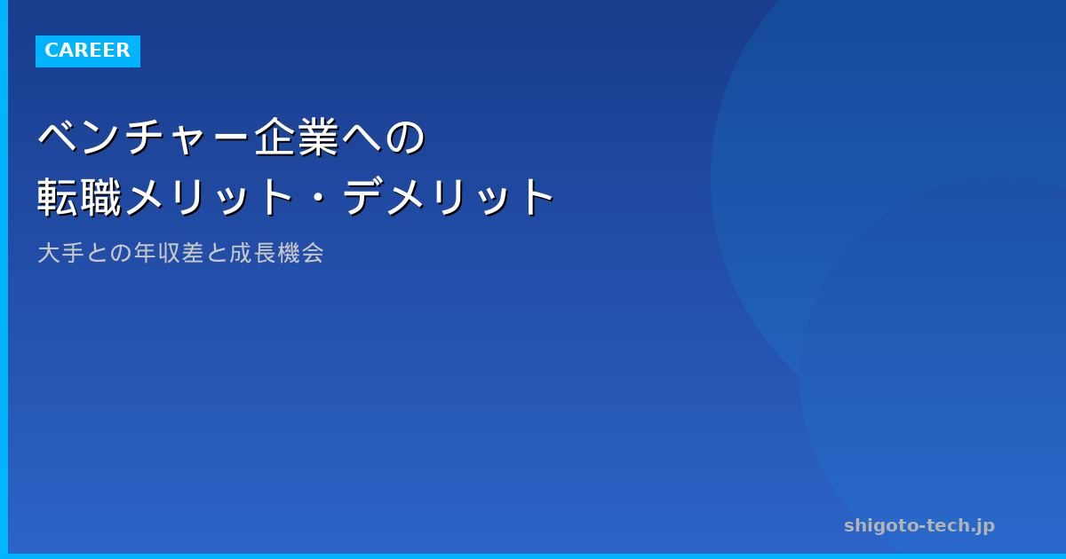 ベンチャー企業への転職メリット・デメリット|大手との年収差と成長機会【2026年版】